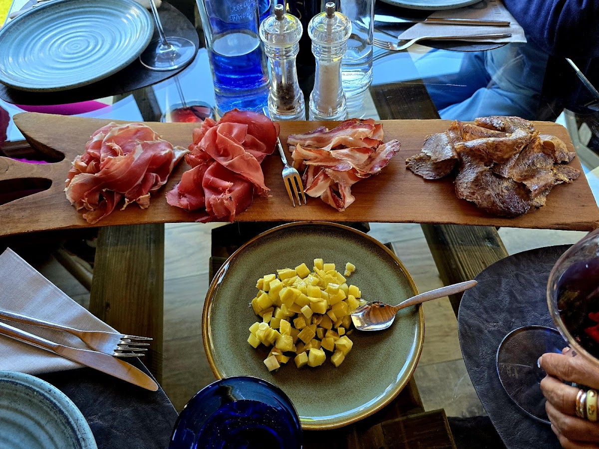 Beautiful restaurant on the mountain, seemed delicious by reviews and local people. Starter cheese with salumi was amazing, nice bread, nice selection of cheese, peach, chutney and the salumi were nice. I got the sausage and polenta was amazing. My husband had the fresh pasta with porcini and mirtilli was small portion and not much flavor, mirtilli were frozen. My mom had the "elephant ear with purple potatoes, was very dry and the potatoes were also very dry. We had to ask for a tomato to make the meal a bit fresh. Maybe it should be like that but we didn't enjoy it much as it was a plate too dry. My husband is italian he said the same. Wine was nice, not expensive, we didn't get dessert but the pear grappa was nice. Place was beautiful In the mountains.